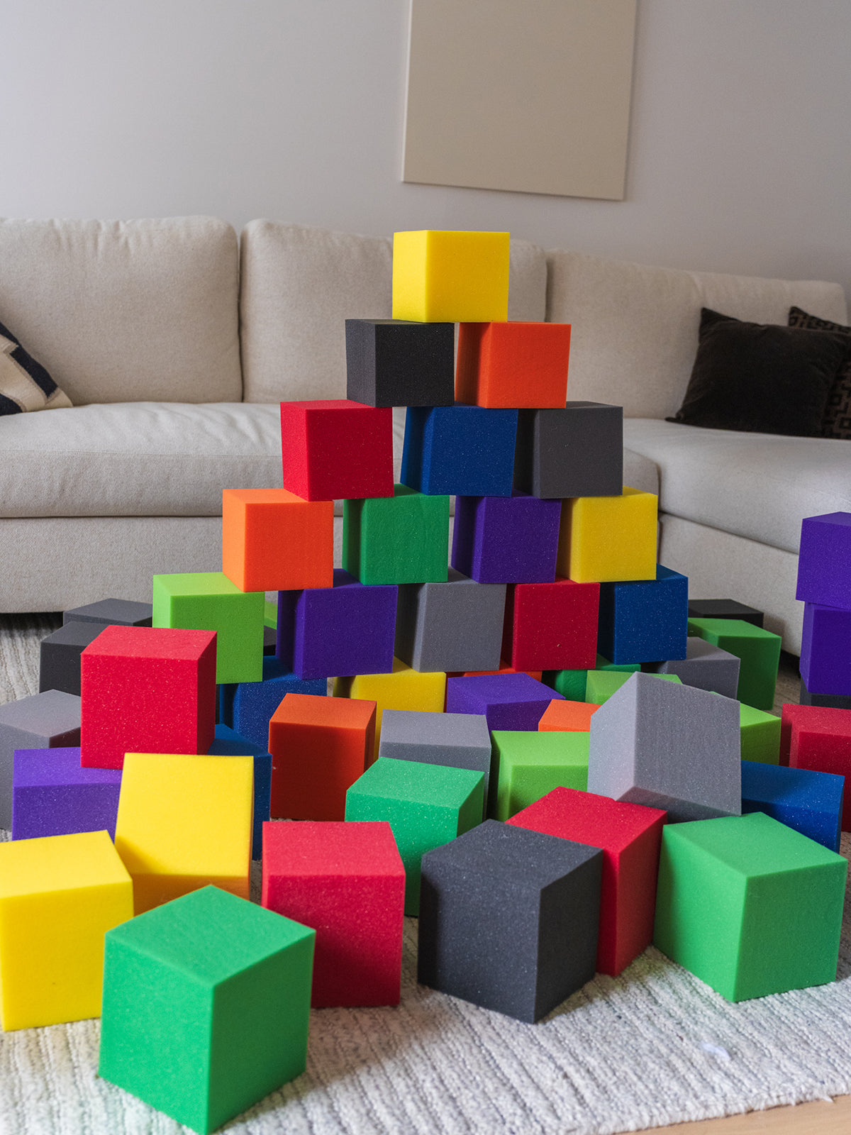 These soft, vibrant blocks are perfect for building towers, forts, and even castles of their dreams. With every stack, tumble, and rebuild, laughter fills the air as little hands explore creativity and problem-solving. The cubes' lightweight, squishy texture ensures safe play, whether they're creating obstacle courses, crafting a life-sized puzzle, or inventing their unique games. It’s a delightful mix of energy, imagination, and pure joy—making foam cubes a favorite for kids and parents alike!